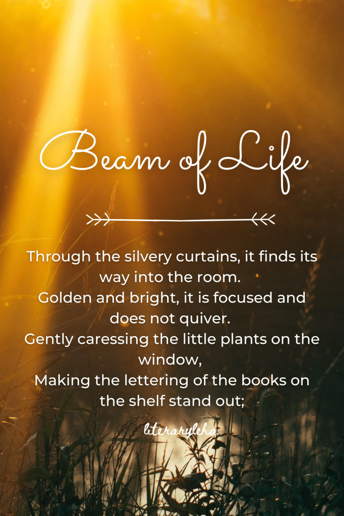 I love how you weave nature into your prose and poems. Almost like the beam of life/light is alive.